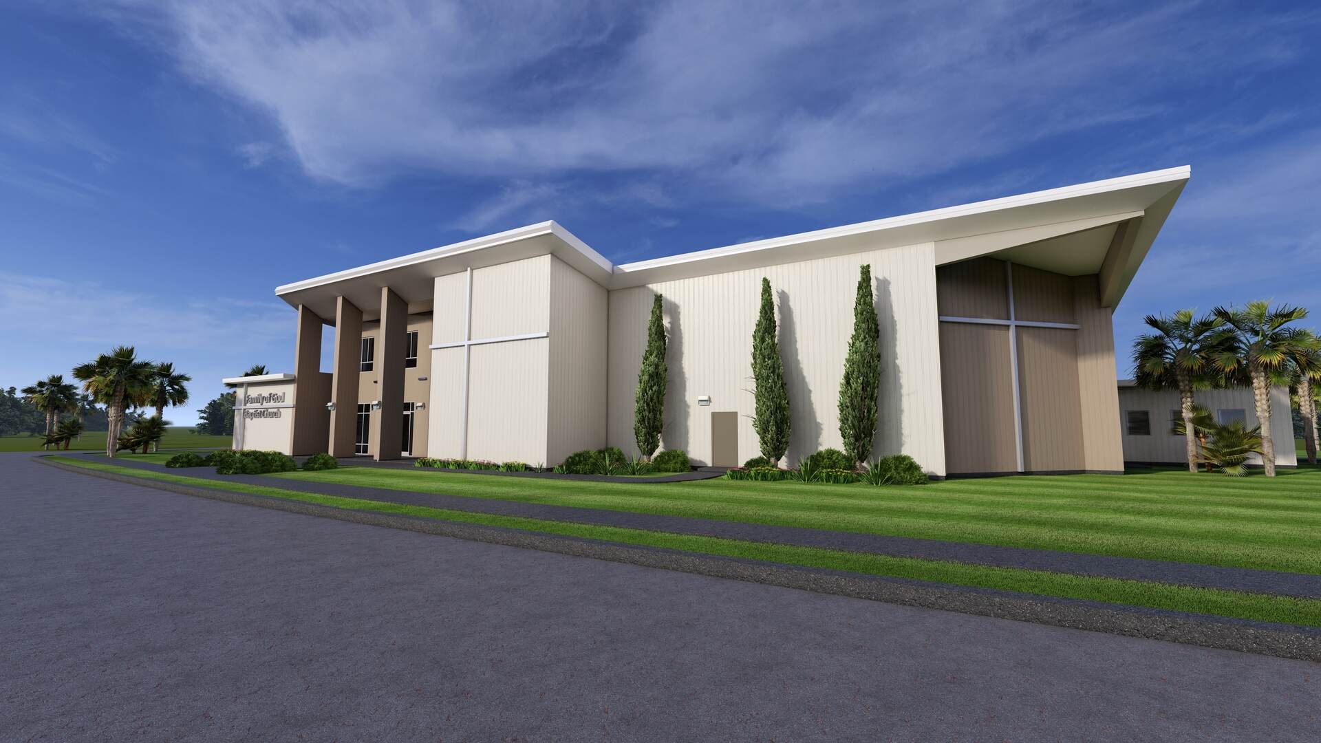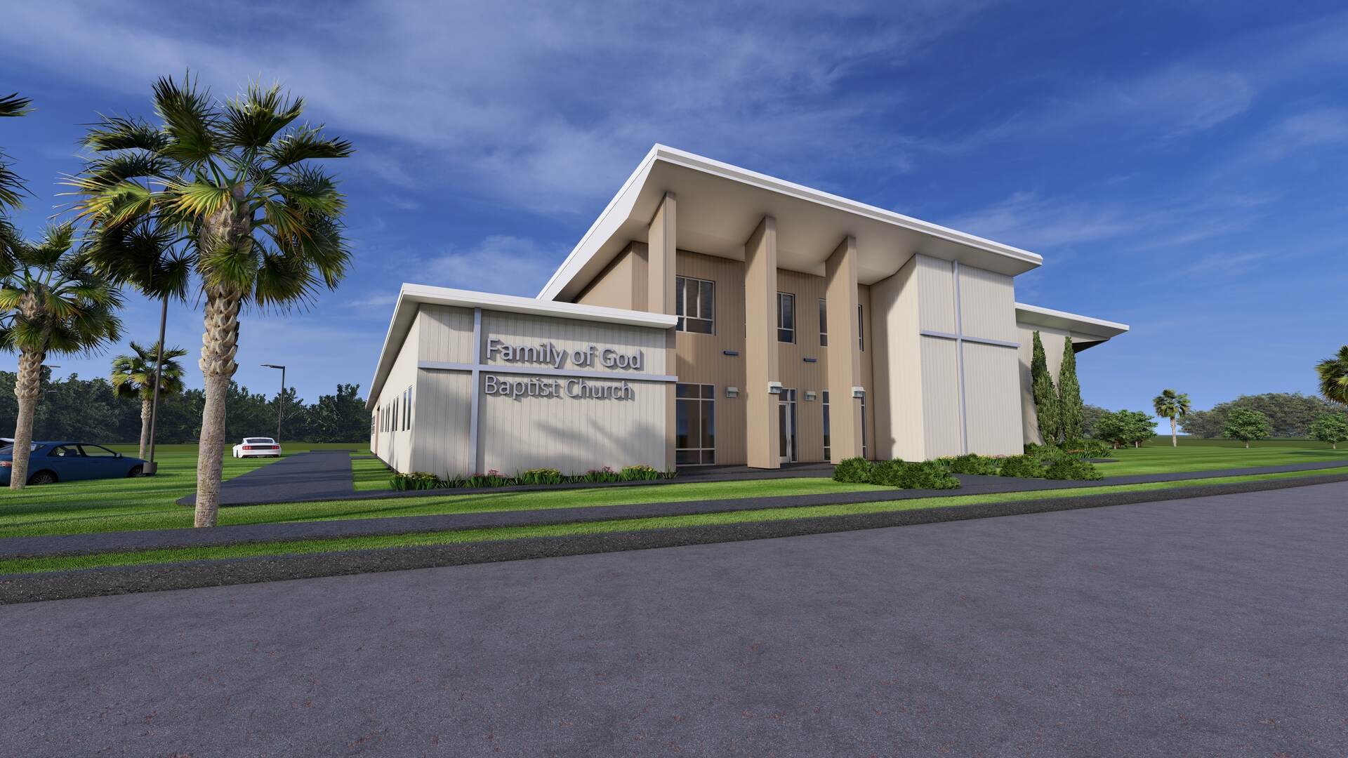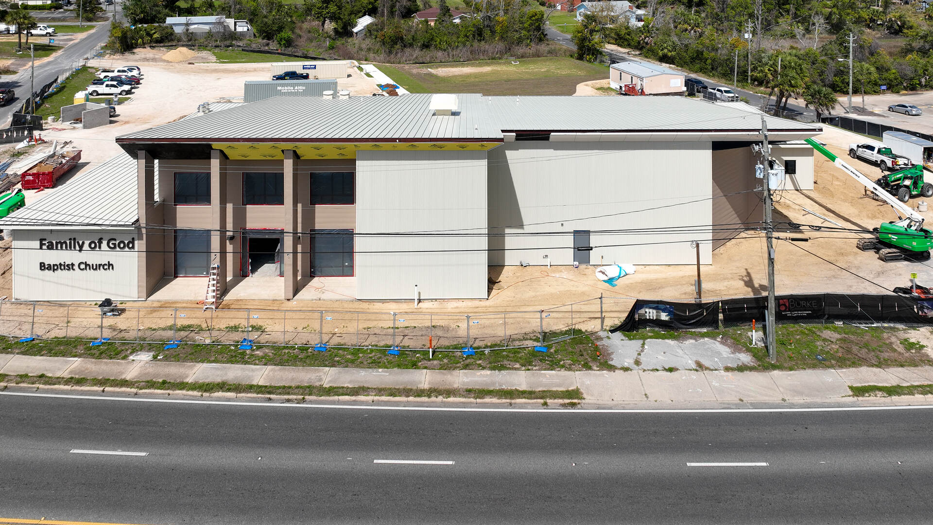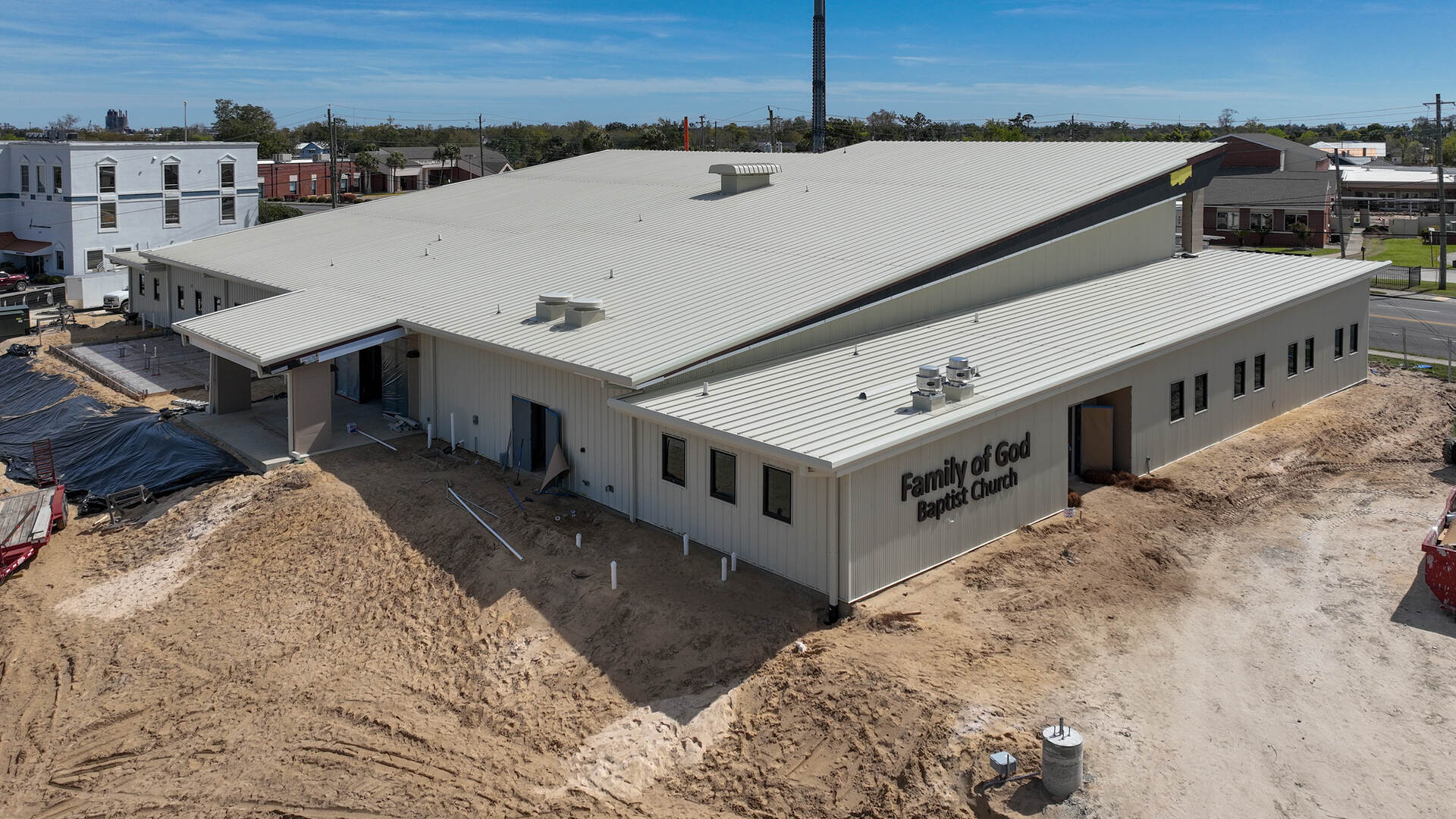 The Family of God Baptist Church project in Panama City, FL includes the ongoing construction of a 16,000 GSF pre-engineered metal building to replace a hurricane-damaged facility. The scope includes a sanctuary, classrooms, administrative offices, and a kitchen, along with full site reconfiguration to support the new building layout.