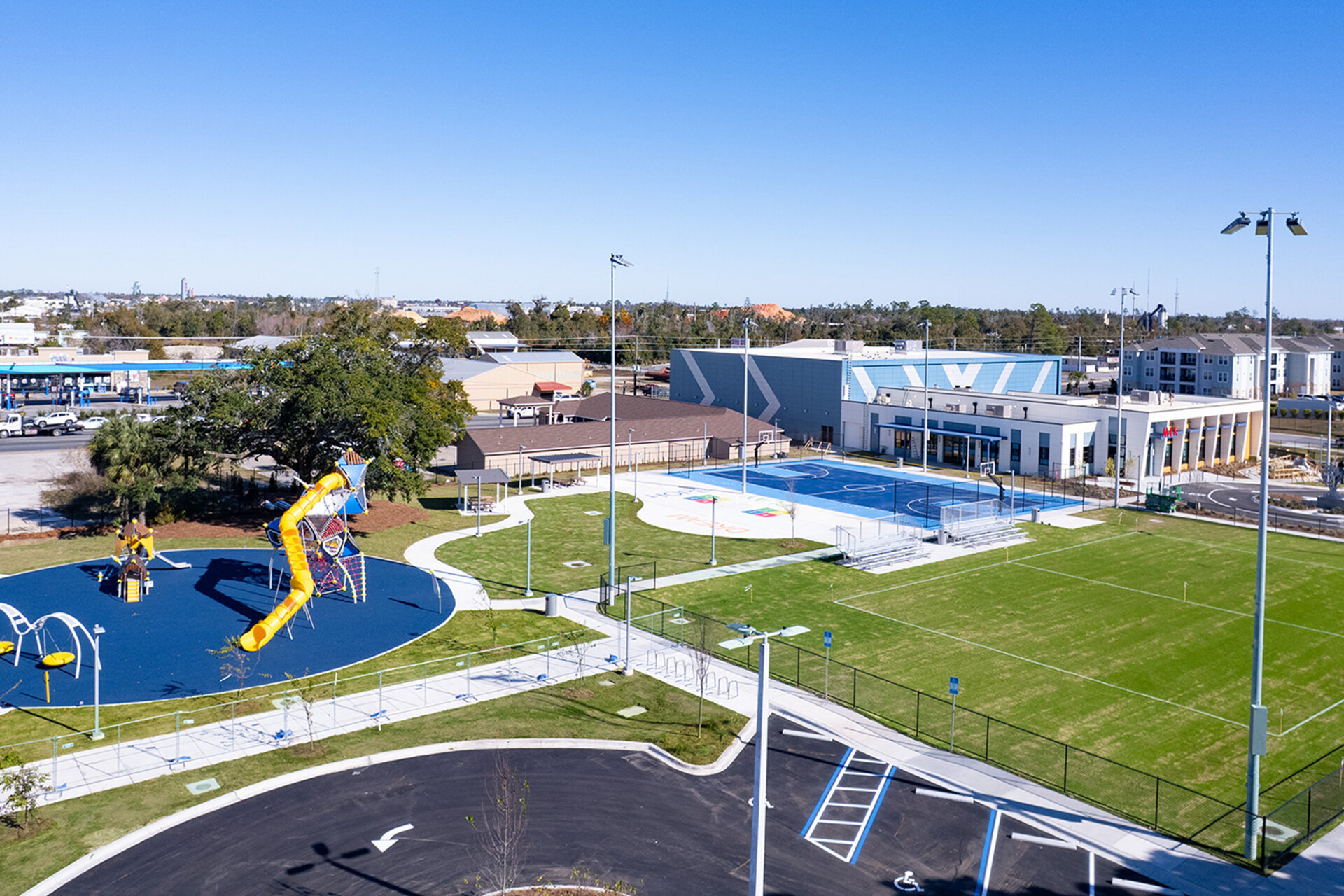 As the general contractor for the new MLK Jr. Recreation Center in Panama City, Burke Construction Group rebuilt this cherished community space. The new 30,000-square-foot facility serves as a hub for community engagement and recreation, offering indoor and outdoor basketball courts, a gymnasium, a fitness room, a STEM lab, an E-sports room, an arts and crafts area, and a teaching kitchen. Additionally, the center will feature a state-of-the-art recording and editing studio, creating an inclusive environment where residents of all ages can connect, learn, and thrive.